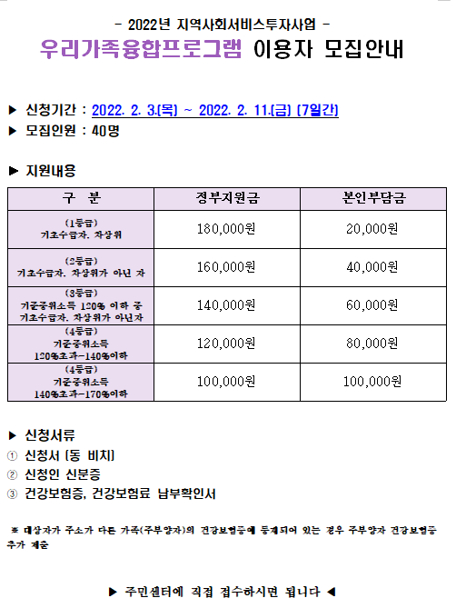 우리가족융합프로그램 이용자 모집 안내