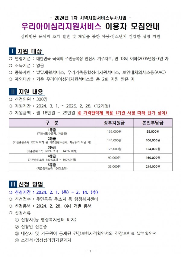 임시사이트 안산아동청소년발달센터 ★2024 우리아이심리지원바우처 이용자 1차 모집 안내★ > 공지사항 | 안산아동청소년발달센터