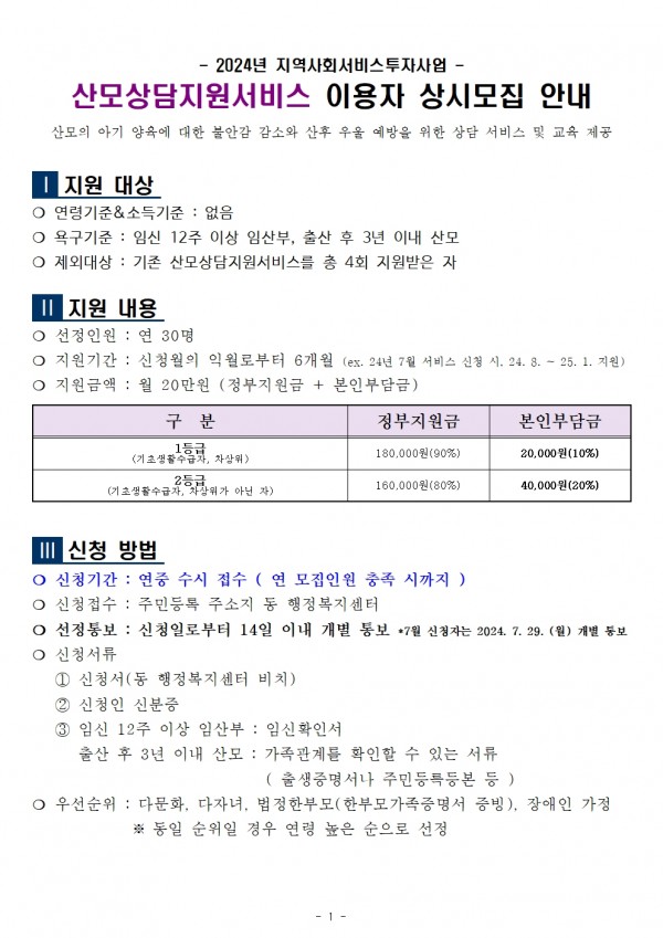 ★2024 산모상담지원서비스 이용자 1차 모집 안내★