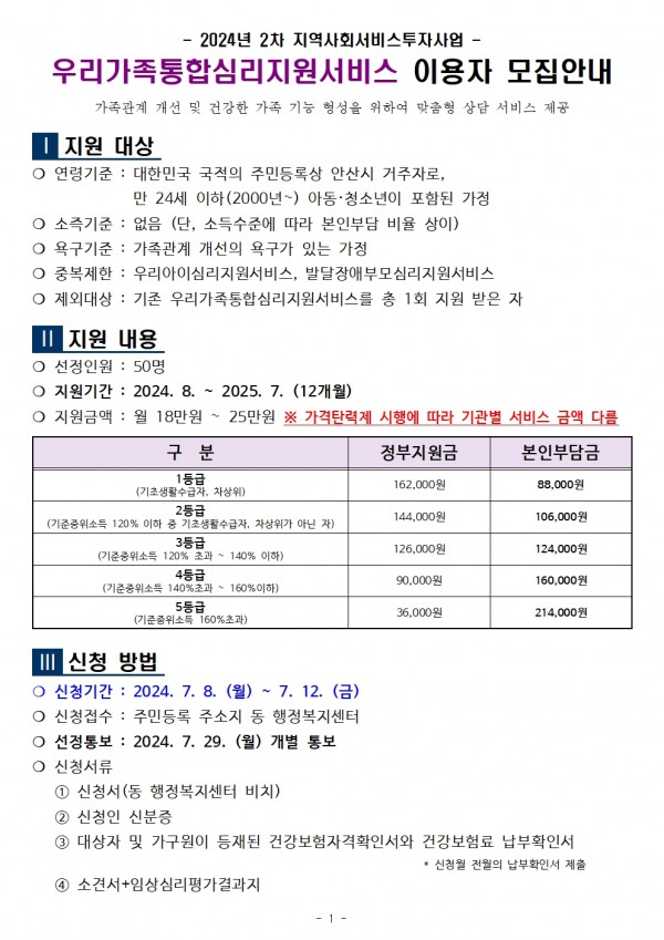 ★2024 우리가족통합심리서비스 이용자 2차 모집 안내★