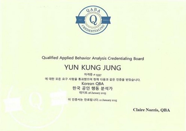 QBA 합격- 한국 공인 행동 분석가 ( 정윤경센터장 )